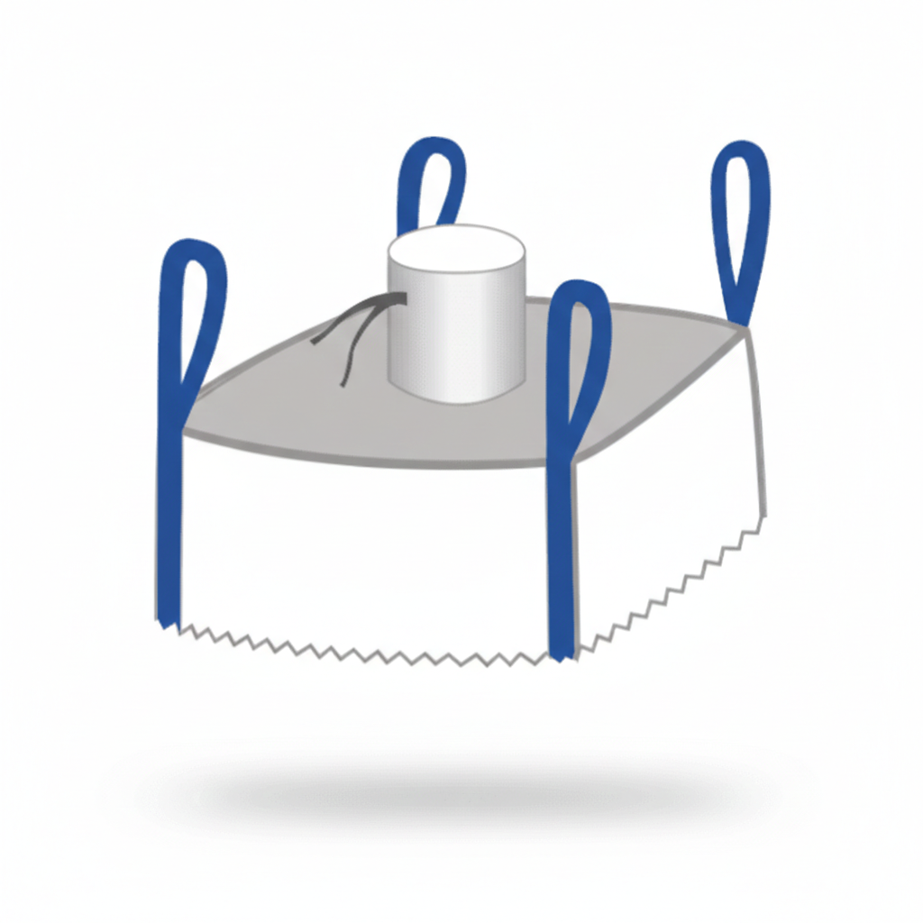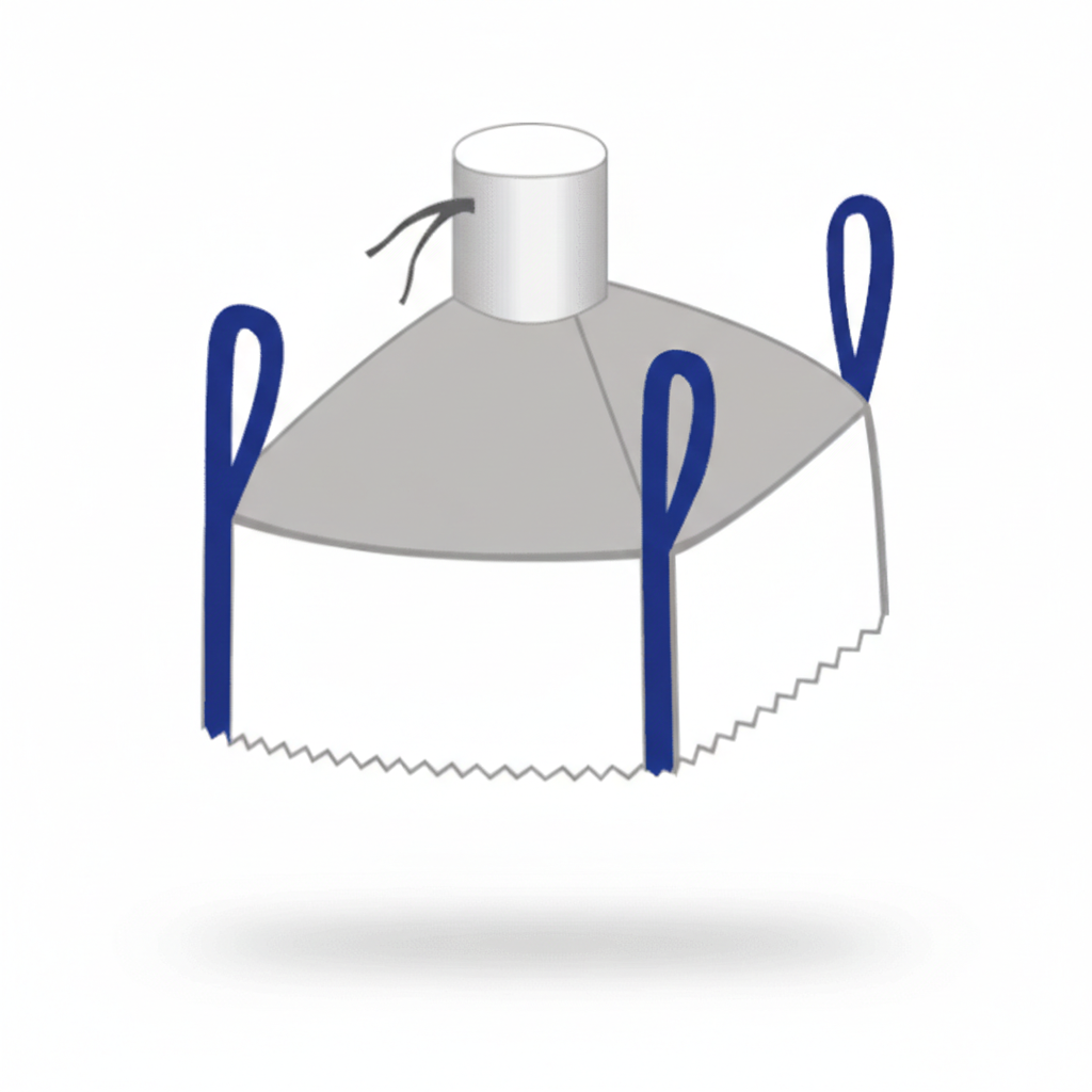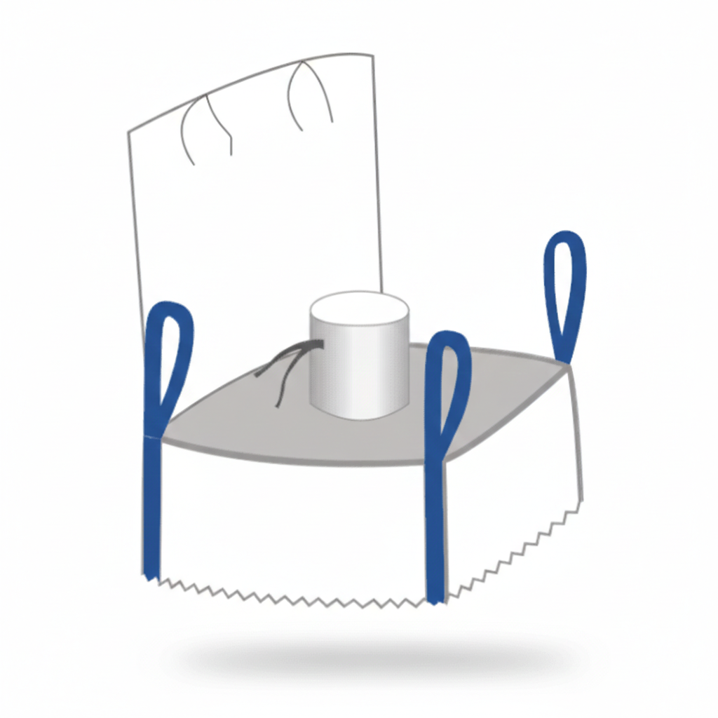 Αυτός ο σάκος διαθέτει χωνοειδές άνοιγμα στο κάτω μέρος, που επιτρέπει την εύκολη εκκένωση. Οι σωλήνες (spouts) είναι τοποθετημένοι μέσα στο κάτω μέρος του σάκου και παραμένουν κλειστοί έως ότου είστε έτοιμοι να απελευθερώσετε το προϊόν.