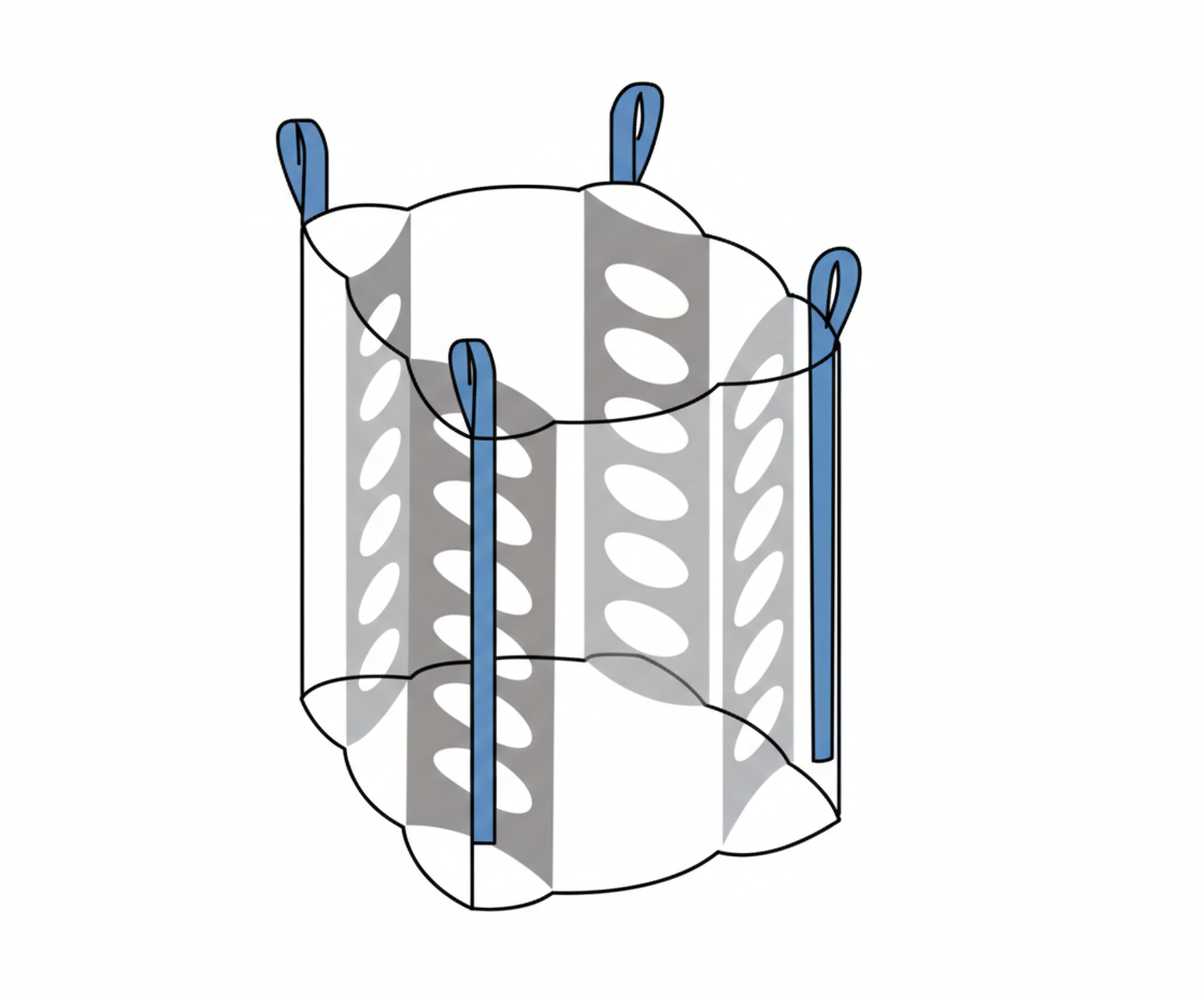 Ωμά αγροτικά προϊόντα, όπως πατάτες, κρεμμύδια ή φασόλια, μπορούν να αποθηκευτούν και να μεταφερθούν σε σάκους αυτού του τύπου. Οι αγροτικοί σάκοι συχνά κατασκευάζονται από αεριζόμενο ύφασμα, που επιτρέπει την κυκλοφορία του αέρα μέσα και έξω από τον F.I.B.C. Οι αεριζόμενοι σάκοι μπορεί να διαθέτουν και δίχτυα στα πάνελ για ακόμα καλύτερο αερισμό.