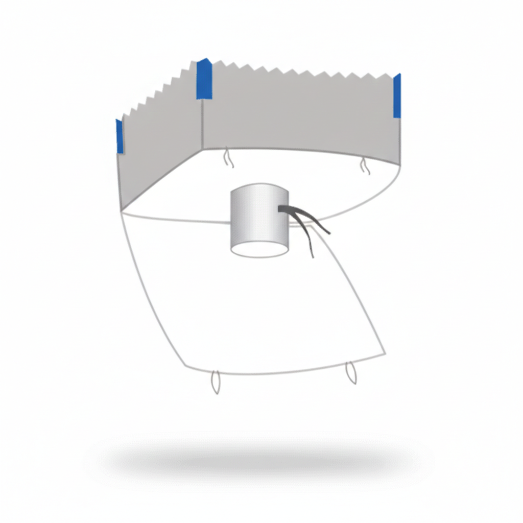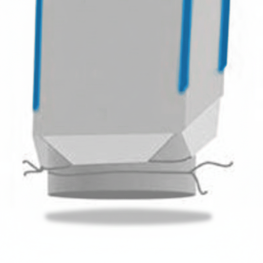 Άνω πάνελ και κύλινδρος προσαρτημένα στο πάνω μέρος του σάκου. Ο σωλήνας πλήρωσης επιτρέπει καθαρή και ελεγχόμενη μεταφορά υλικού από τον εξοπλισμό πλήρωσης στον σάκο. Μετά το γέμισμα, ο σωλήνας μπορεί να δεθεί με τις προσαρτημένες ταινίες.